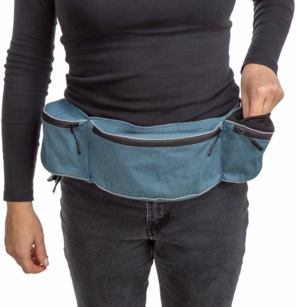 Den här godisväskan med flera fack och snabb åtkomst är en praktisk väska designad för enkel och organiserad förvaring av tillbehör och belöningar under promenader och träning.