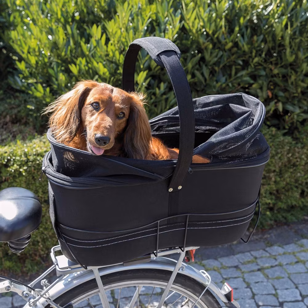 Observera cykelkorgens maximala lastkapacitet. Vänj hunden vid cykelkorgen innan er första cykeltur. Om nödvändigt, provcykla först utan djur i korgen.