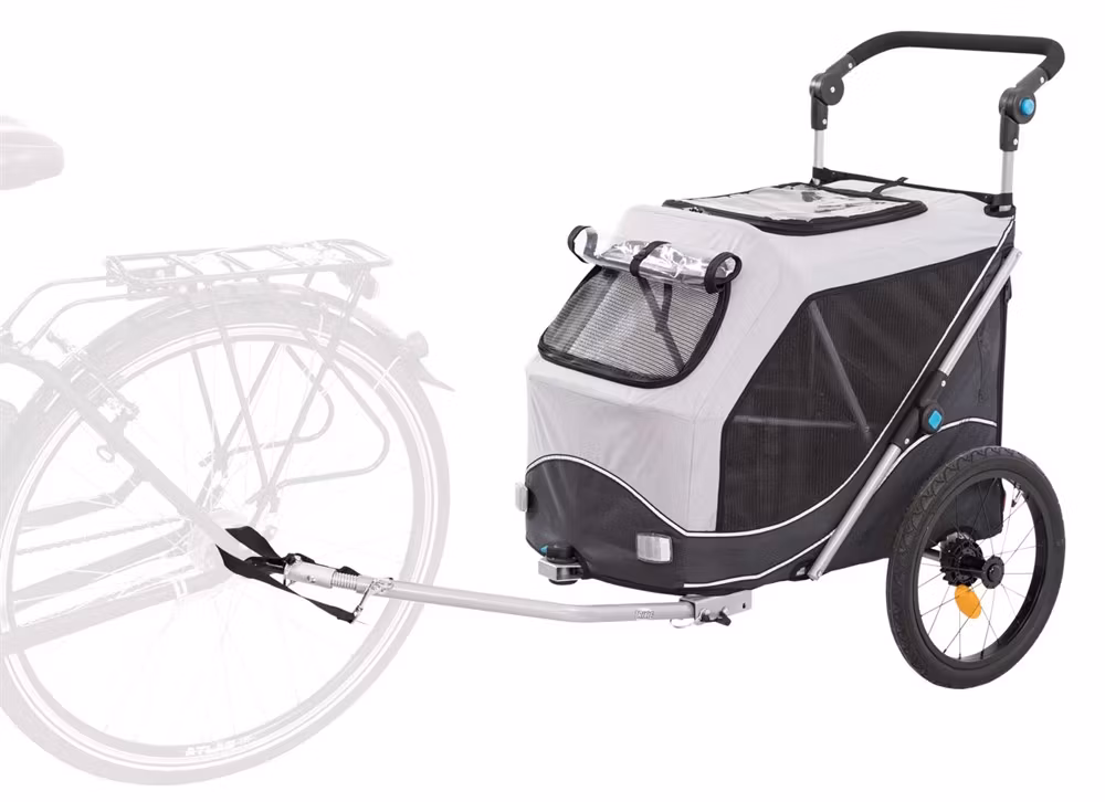 Med denna cykelvagn kan du ta med dig din hund på en rolig cykeltur!