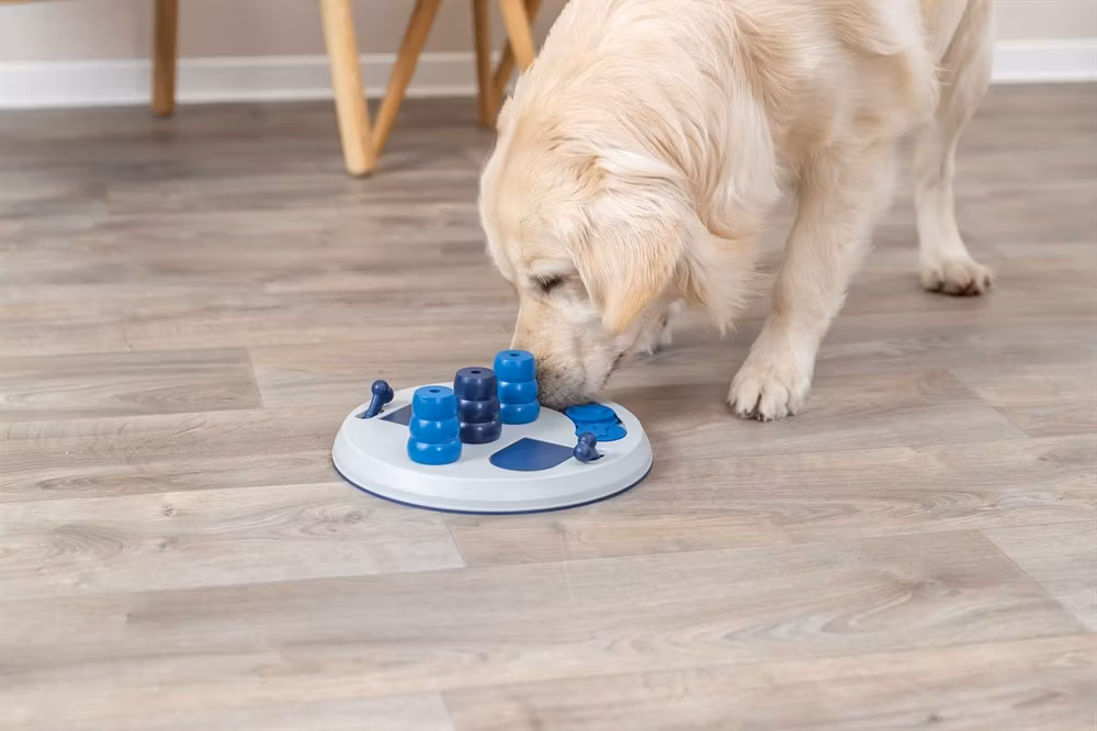 Dog Activity Flip Board XXL Nivå 2 är ett mellansvårt spel med 3 koner och fördjupningar, uppfällbara luckor och skjutluckor som passar perfekt för nyfikna hundar!