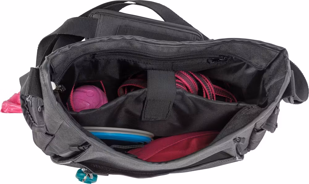 Denna väska är idealisk för hundägare som vill ha en organiserad och bekväm lösning för att bära utrustning och tillbehör under promenader.
