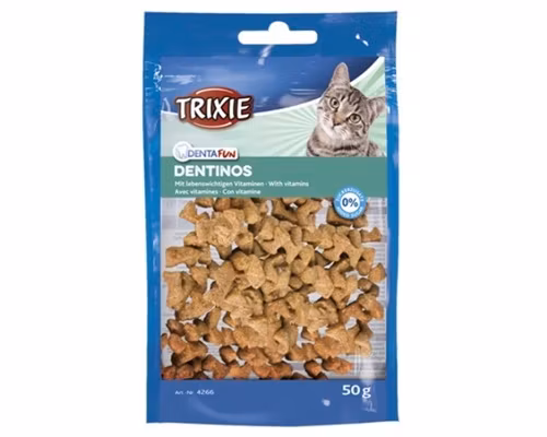 Trixie Dentinos - ett kattgodis med vitaminer - den perfekta lösningen för att rengöra din katts tänder på ett enkelt och roligt sätt. Dessa unika godbitar har en speciell form och struktur som hjälper till att rengöra kattens tänder och mellanrum mellan tänderna, samtidigt som den ger en god smak som din katt kommer att älska.