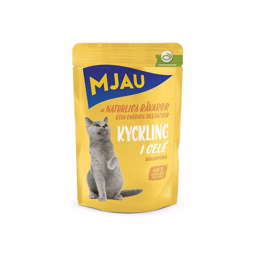 Mjau Kyckling i Gelé är ett kärleksfullt tillagad med naturliga råvaror.