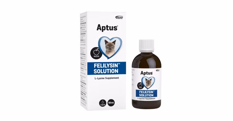 Aptus Felilysin Solution innehåller L-lysin som är en livsviktig aminosyra som katten inte kan producera naturligt. L-lysin behöver ingå i kosten eller genom ett tillskott för att säkerställa kattens allmänna välbefinnande.