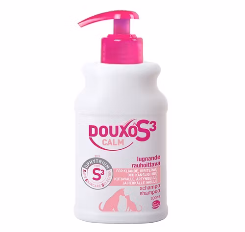 DOUXO S3 Calm Schampo har en unik formulering som kombinerar 5 olika aktiva ingredienser till en blandning som är skonsam och återfuktar och mjukgör torr och känslig hud hos både katter och hundar.
