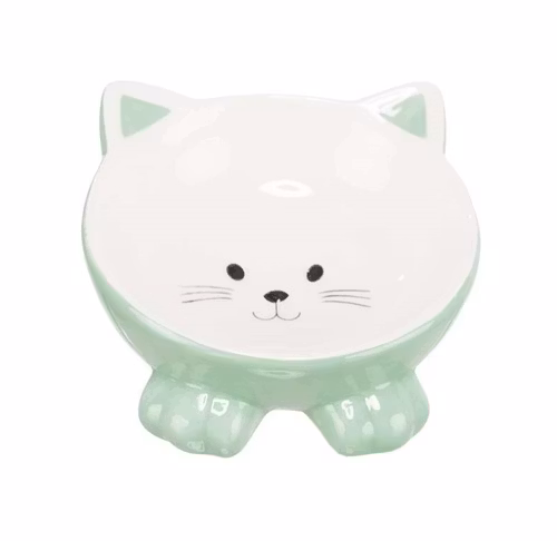 Den här gulliga kattmatskålen i keramik är inte bara gullig att titta på, den är även ergonomisk för katten.