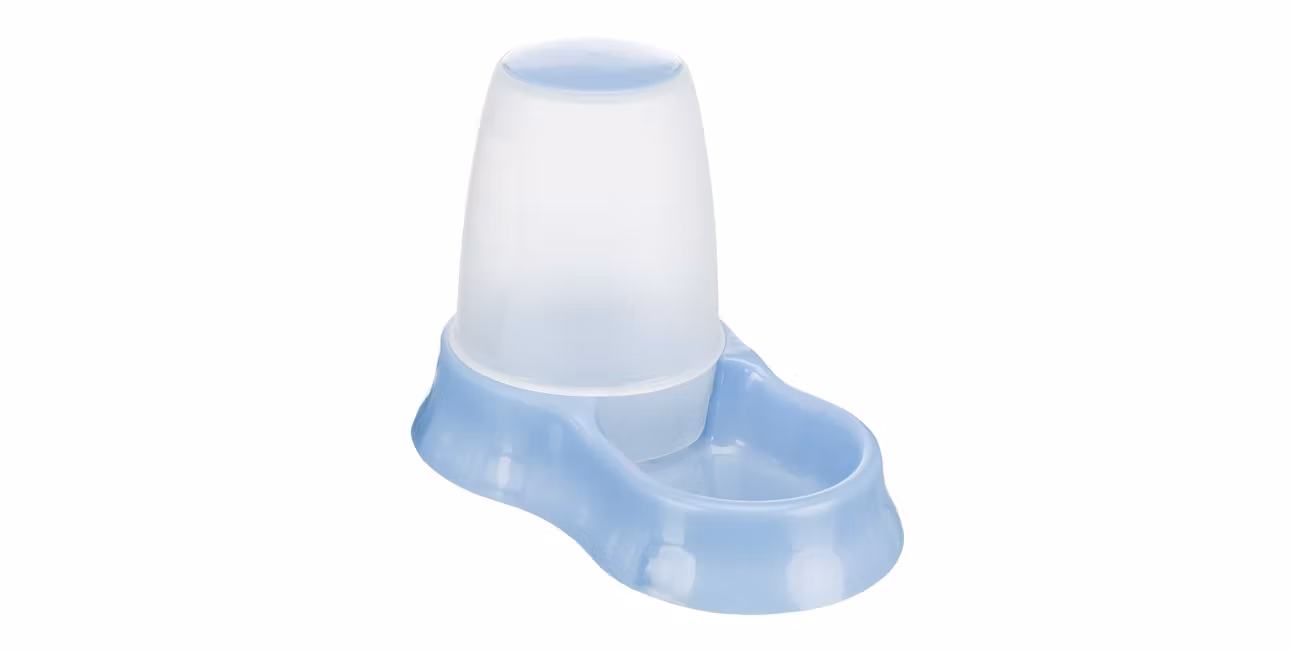 Denna vridbara behållare har två öppningar som kan fyllas med både vatten och foder.