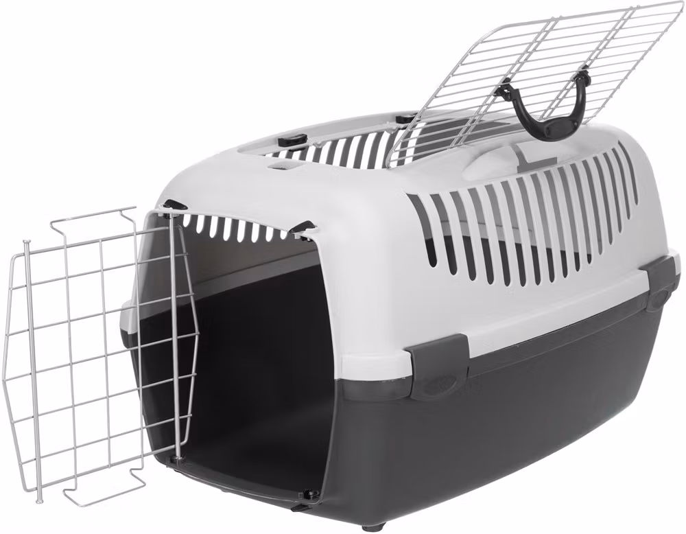 Transportburen Capri 3 Open Top är en utmärkt val för katt- och småhundsägare som söker en mångsidig och tillgänglig transportlösning. Denna bur har ett unikt öppningsbart metallgaller i taket, vilket tillåter enkel åtkomst till ditt husdjur, samt en traditionell metalldörr framtill. Denna dubbla öppningsfunktion gör det smidigt att hantera ditt husdjur, särskilt för djur som föredrar att inte lyftas genom en sidodörr.